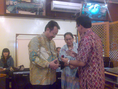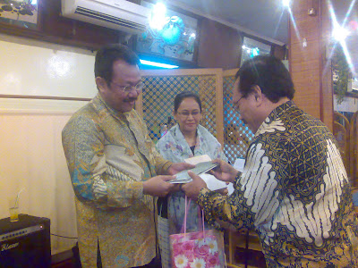 Pemberian cenderamata dari seluruh Staf Biro PKLN yang diwakili oleh Kepala Biro PKLN, Bapak Agus Sartono, kepada Pak Gatot dan Ibu