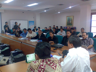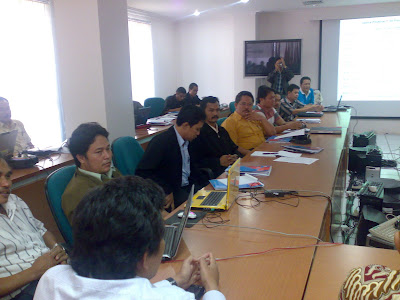 (Peserta yang sedang serius mendengarkan paparan Pak Indra. Tampak sebelah kanan adalah Pak Bagiono, sesepuh ICT Depdiknas)